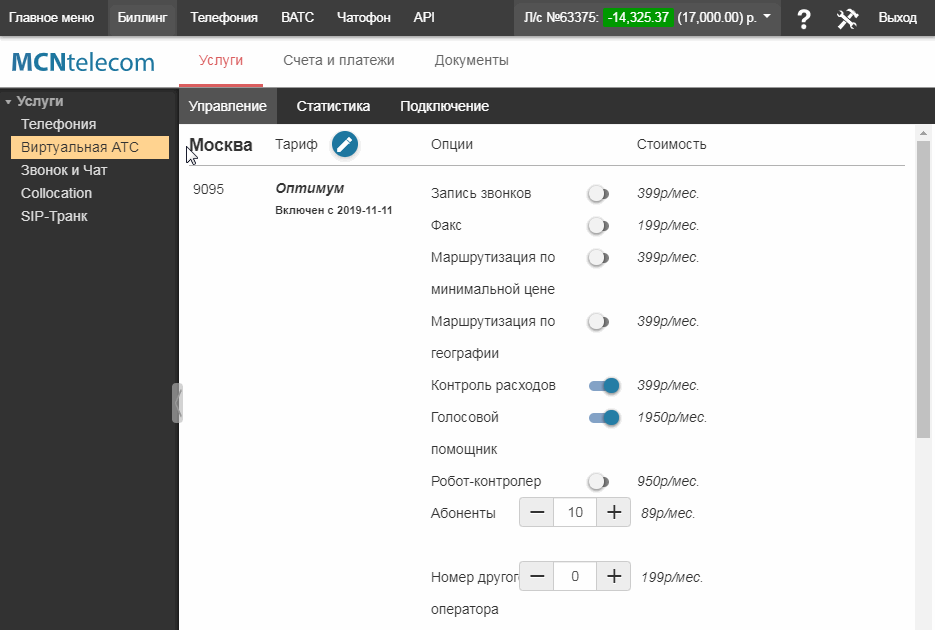Ограничения на исходящую связь можно установить на каждого сотрудника индивидуально по запросу клиента. Существует возможность ограничить использование платного трафика в сутки или в месяц, или вовсе заблокировать платные исходящие вызовы