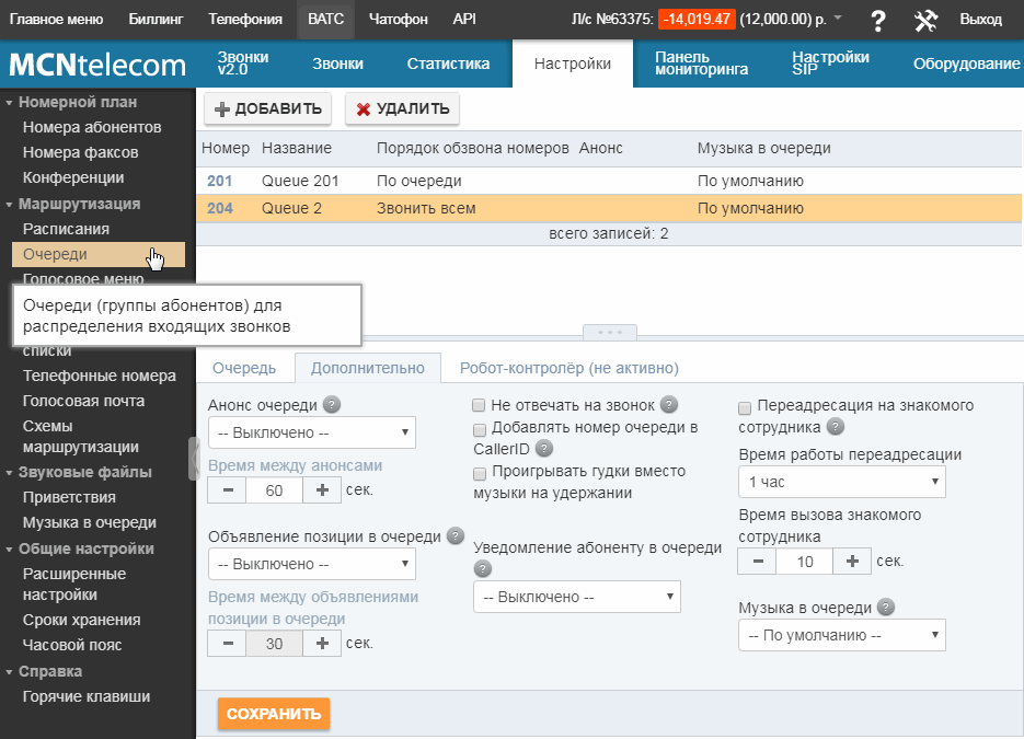 «Знакомый сотрудник» определяется с помощью временного интервала, заданного в настройках Виртуальной АТС (максимально – одни сутки):